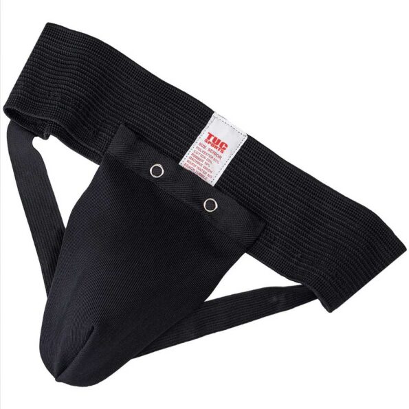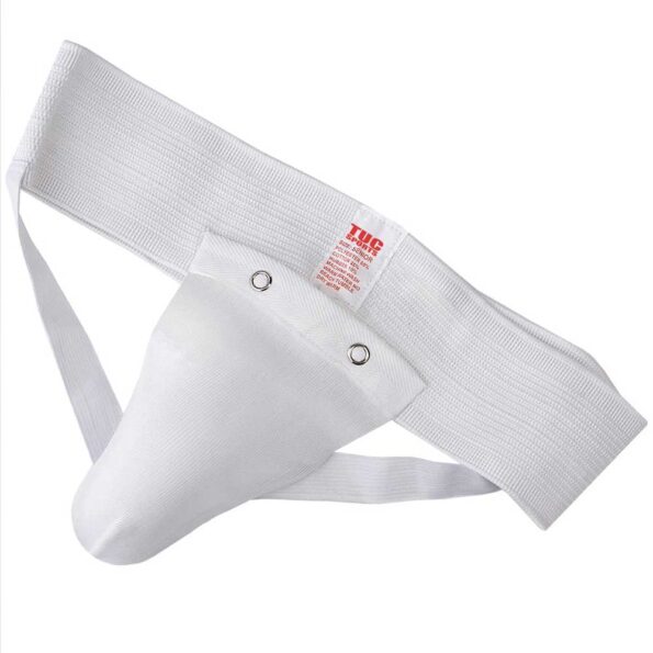 A standard groin guard with a detachable plastic cup. Elasticated waistband and support straps, requires no additional fastening. Cup is enclosed in a layered fabric pocket with a popper opening. Cup design suited specifically for men. Can be worn under or over the trousers. Made from polyester/cotton/Lycra mix. This product may not be returned once the packaging has been opened for health reasons